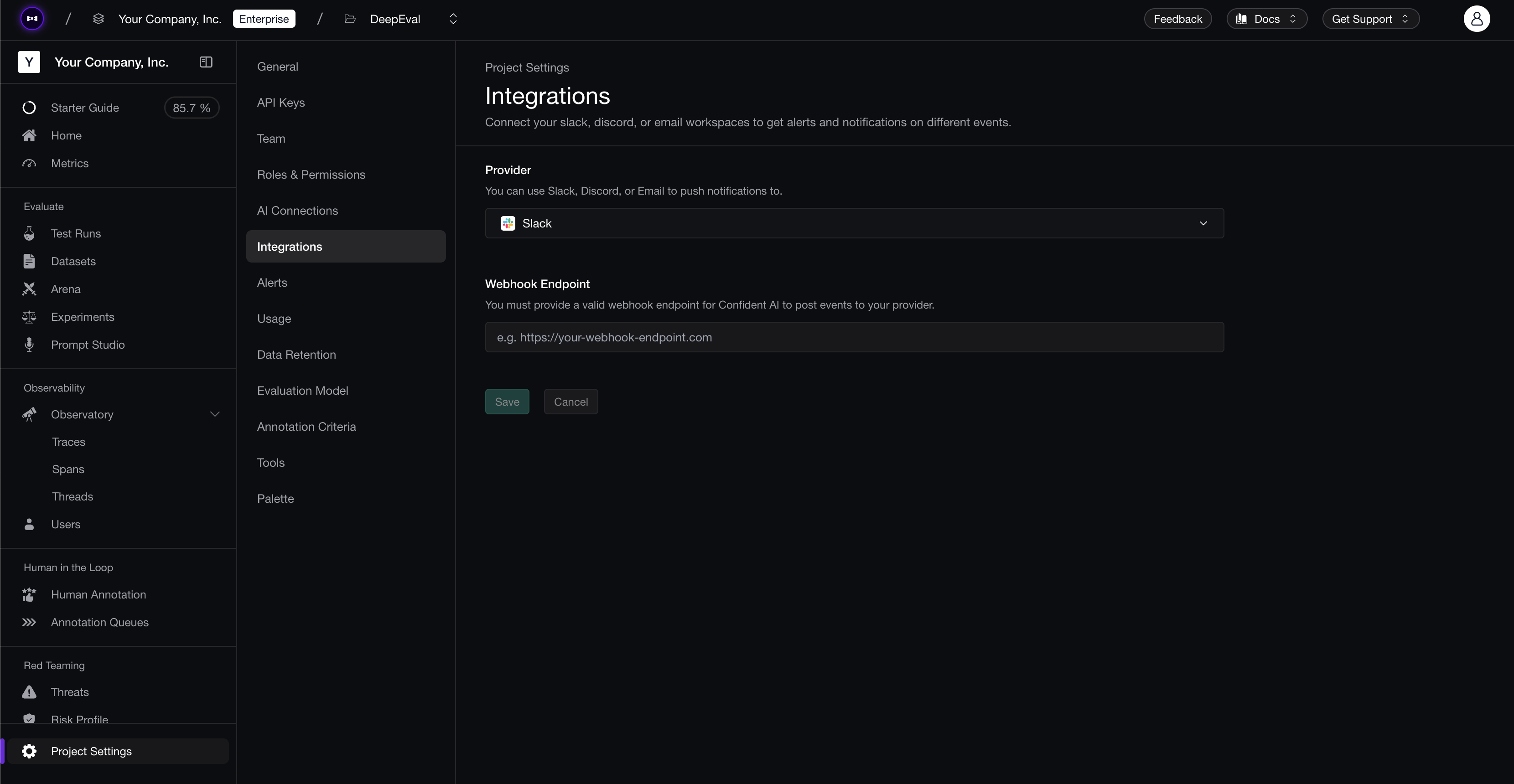 Integrating your workspaces by setting up integrations to get notifications in slack, discord, email, or teams in your project.